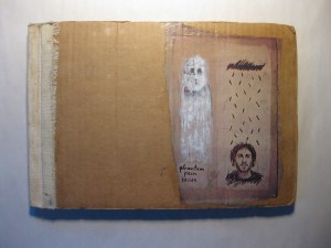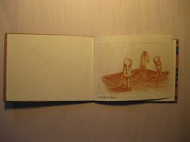 A page from a small book containing 4 etchings. This is called “Puppets Talk”.